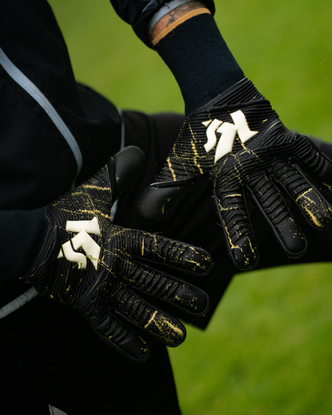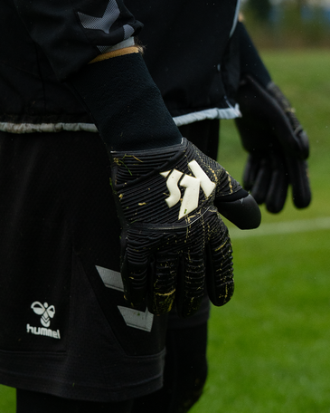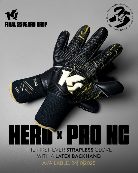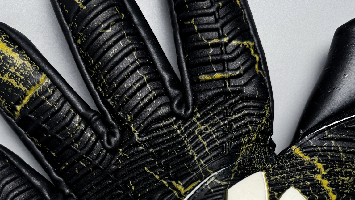 On the occasion of KEEPERsport’s 25th anniversary, we are releasing another new edition of the Varan8 Hero — this time based on the exclusive Pro 25years model. These limited-edition black-and-gold goalkeeper gloves feature the popular negative cut. This match glove combines the proven qualities of the Varan8 Hero with a structured latex backhand and an elegant design that perfectly matches the 25years collection. Thanks to its fully knitted material, this goalkeeper glove is extremely flexible and adapts perfectly to all hand types while maintaining excellent wrist stability. In addition, the 4 mm Super Black Glue foam ensures maximum grip, even under the most demanding conditions.